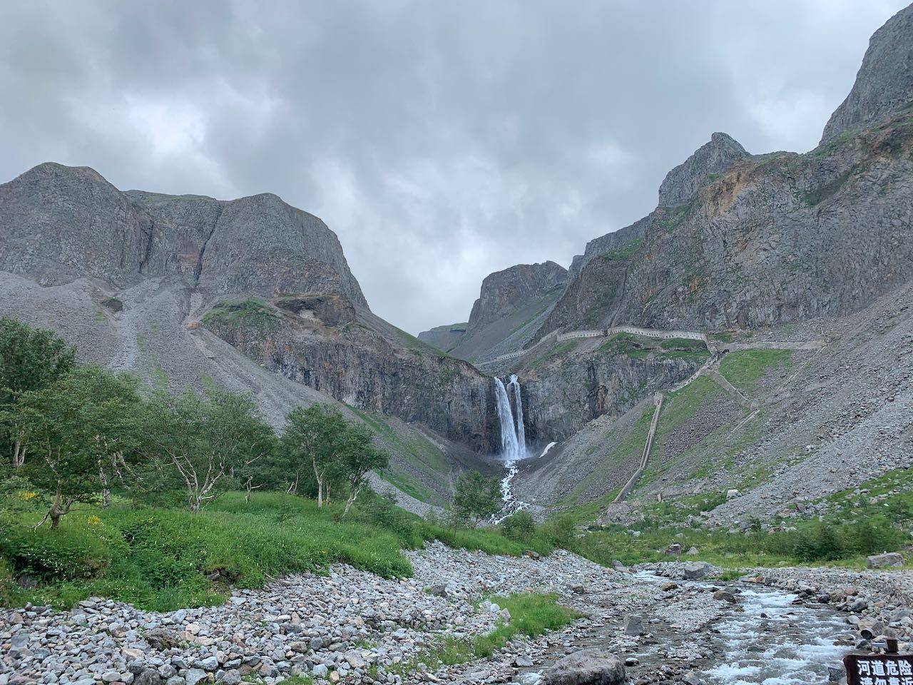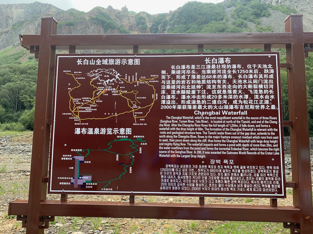 這裡是天池唯一的出水口,接駁車坐到最後一站就可以了,下車後經過一段長長的棧道,路上可以看到硫磺,跟陽明山的小油坑很像,經過硫磺泉之後會經過一片樹林,才會走到瀑布下面,七月是最熱的季節,到了瀑布下一點都感受不到熱,反而有點涼爽,從下車點往返瀑布大約1個小時,如果時間不夠,可以不走到盡頭,走到溫泉蛋小賣鋪吃個溫泉蛋,遠處欣賞瀑布。