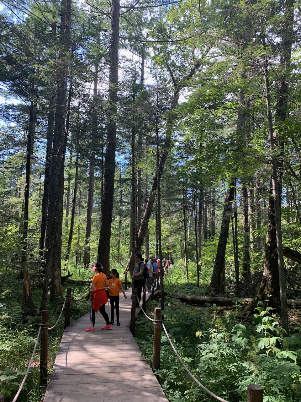 這是離景區大門最近的景點,也是我最後逛的景點,之所以叫做地下森林,是因為火山活動,造成大面積的地層下陷,形成這片山谷,所以這裡是景區海拔最低的地方。森林以東北常見的針葉林為主,我想這片翠綠的森林到秋天葉子變黃應該很值得再來欣賞。