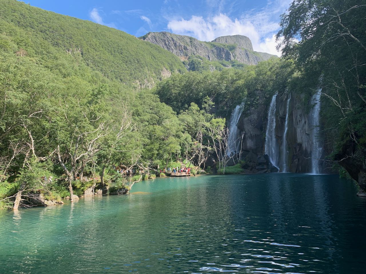 綠淵潭是個很蒼翠的景點,如果天池是個水袍子,那我覺得綠淵潭就是精緻噴泉,整個潭被翠綠的樹木包圍,再搭配26公尺高的瀑布,和光禿禿的天池是完全不一樣的景觀。因為泉水裡面有礦物質,所以潭的顏色呈現綠色,即使夏天綠淵潭的溫度也可以維持在20多度左右,因為被群樹包圍,景區的臭氧量也比較高,感覺特別舒服,景點邊上有餐廳,所以肚子餓的話可以在邊吃點東西。