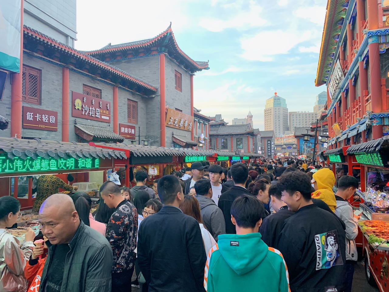 雖然稱為古城,當年的古城應該是不存在了,感覺是在原有的位置上打造古城商店街,但是我想這裏應該是市區最熱鬧的地方之一,吃的喝玩樂在這都能找得到,白天顯得有點冷清,到了晚上會有夜市,冷清的街道瞬間熱絡了起來,烤肉串,烤冷麵,麻辣燙,在夜市能看到的經典小吃在這都能吃得到。這裡儼然也是當地重要的活動中心,有人會到這裡開線上直播吸引人氣,順便賺點外快。