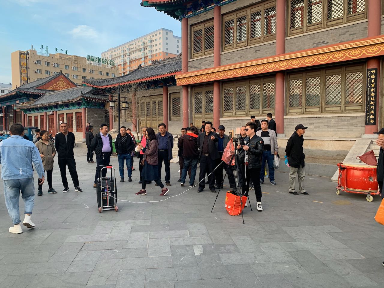 在廣場開直播的街頭藝人