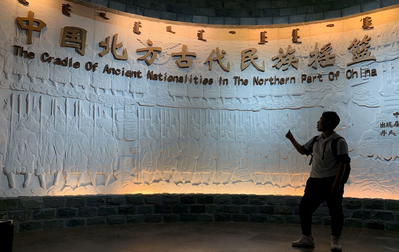 博物要從旁邊的邊門進入,找了好久一度以為沒有開放。開放的空間總共有三層,我覺得比較有趣的是中國北方狩獵民族展,北方狩獵民族除了蒙古族以外還包括以前在歷史課本上看過的鮮卑、女真契丹⋯⋯。展廳介紹整個北方狩獵民族在歷史,還有生活方式,以及展出了在呼倫貝爾地區發現的遺址收藏。一樓宣傳地方的政績。